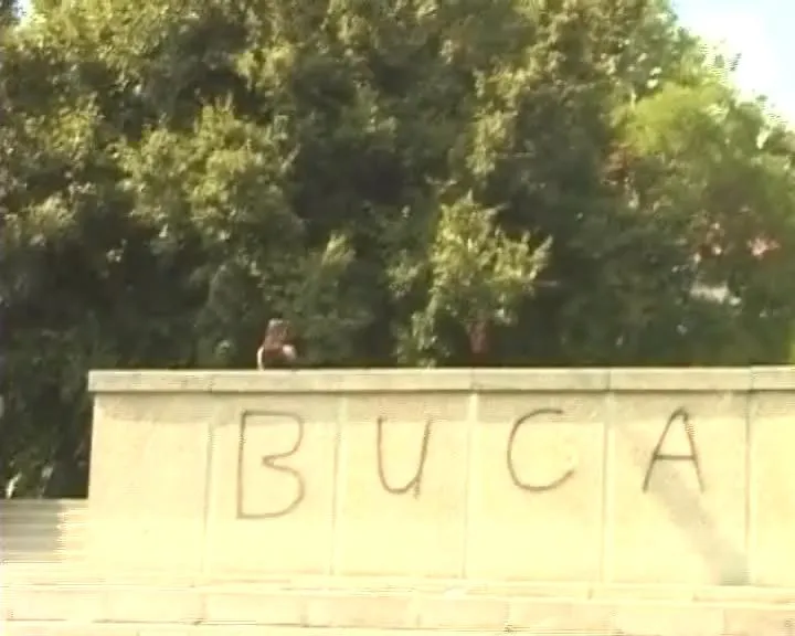 Blonde Luder pinkelt mitten auf die Stiegen